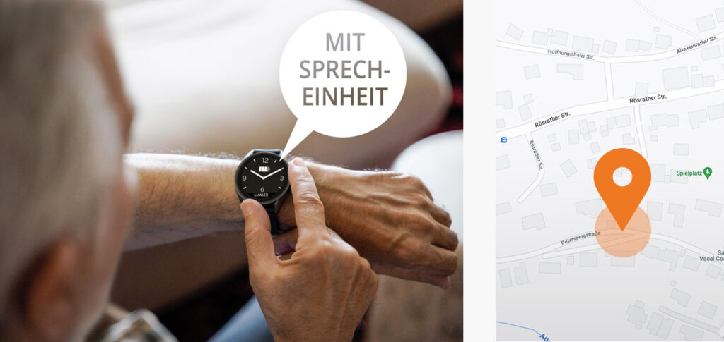 Die Notruf-Uhr ermöglicht in einem Notfall eine präzise Ortung via GPS, WiFi und GSM. So können Sie überall in Deutschland geortet werden und die Helfer sind schnell für Sie da.